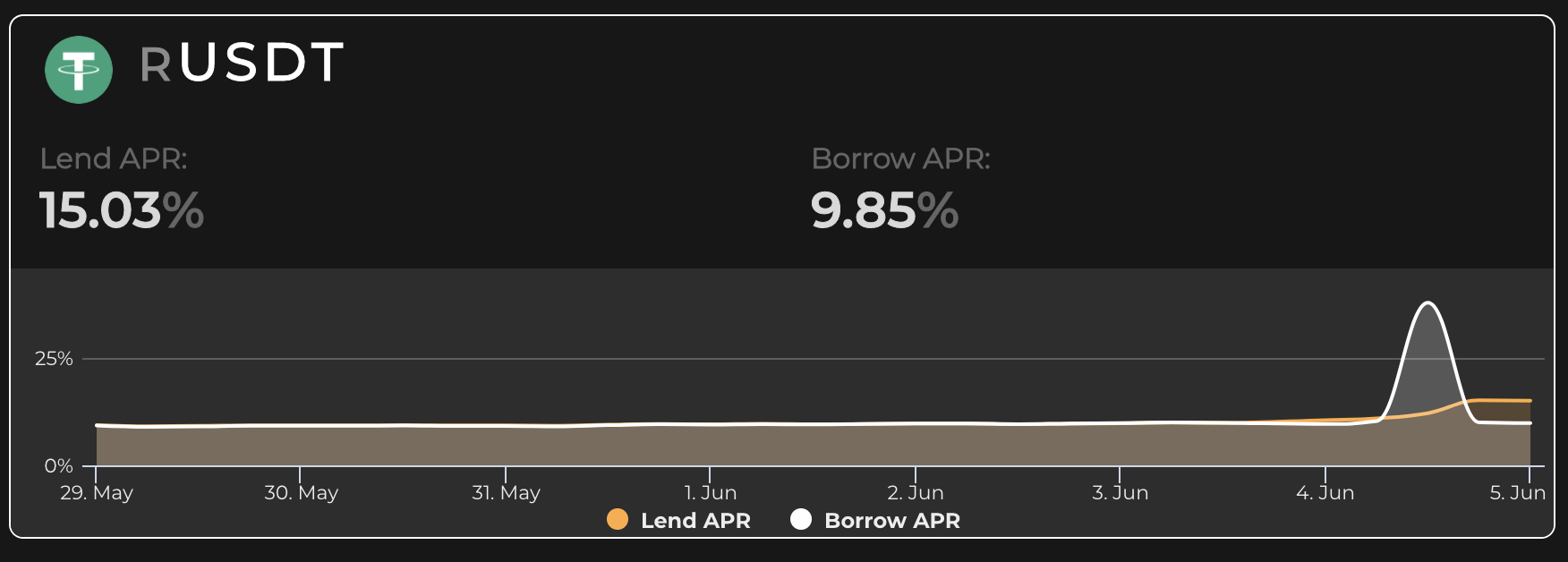 Currently, it seems the Lend APR is higher than the Borrow APR for RUSDT.